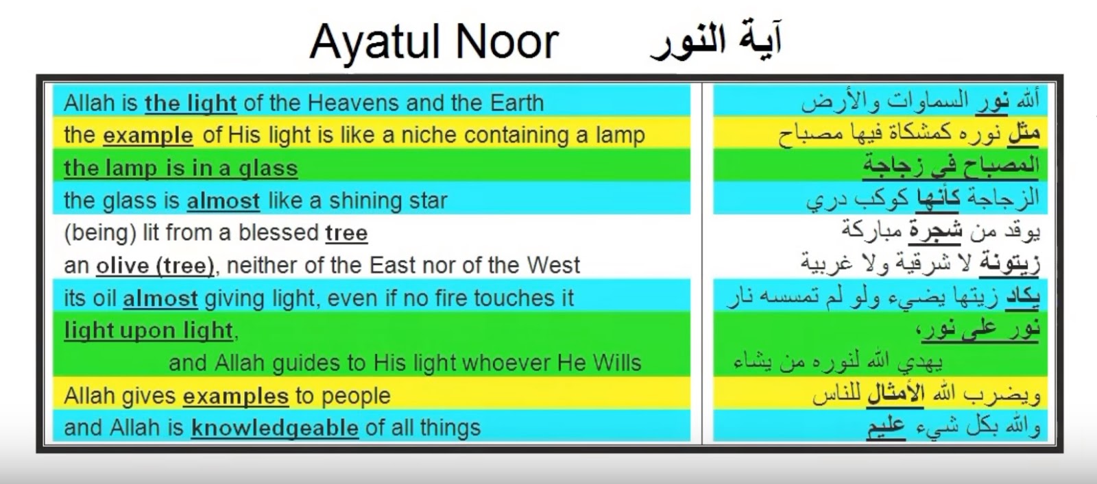 آیت الکرسی کے نو حصے ہیں مگر ان نو حصوں کو اللہ نے بہت ہم آہنگی سے بنایا ہے